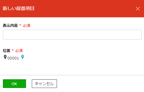 | OK | 採番項目を追加・編集し、元の画面に戻ります。 | ||||||
