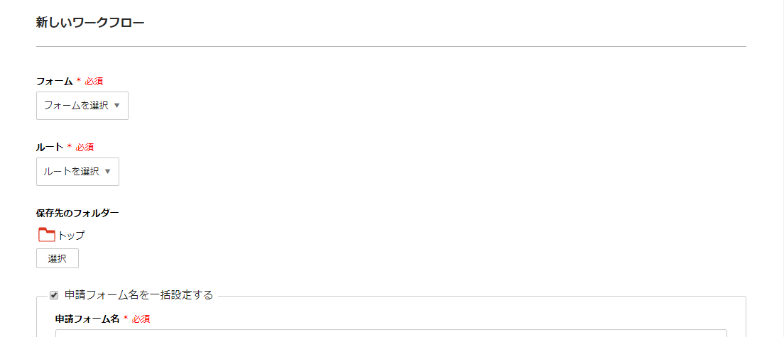 | フォーム * 必須 | 登録済みのフォームから、ワークフローに設定するフォームを選択します。