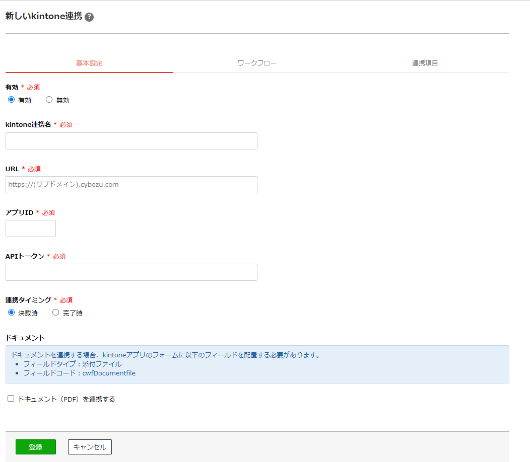 | 有効 * 必須 | kintone連携の設定の有効/無効を設定します | ||||||