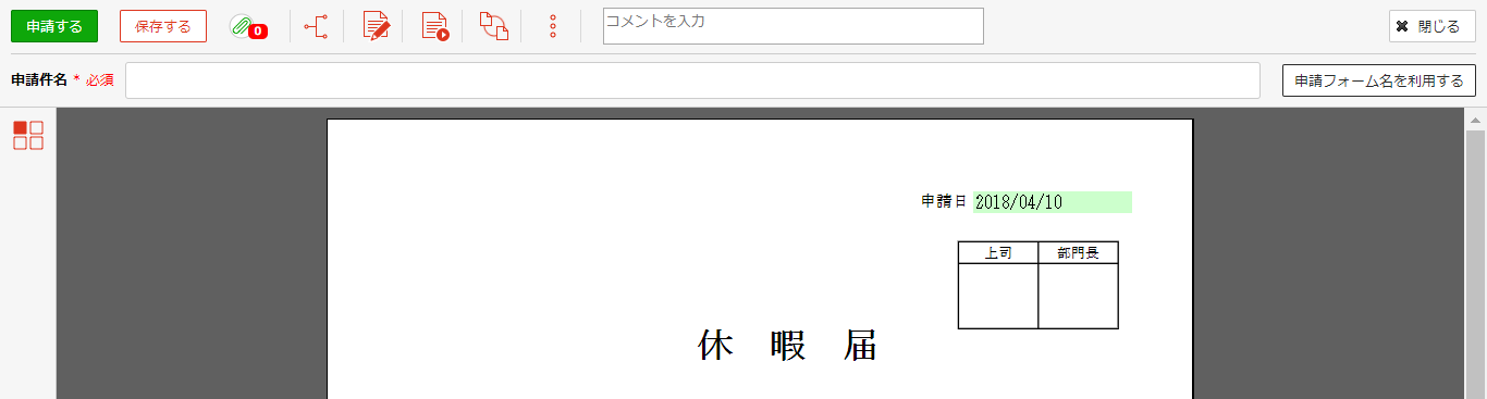 申請時に表示される入力フォーム画面(フォーム)の各種機能を説明します。